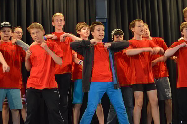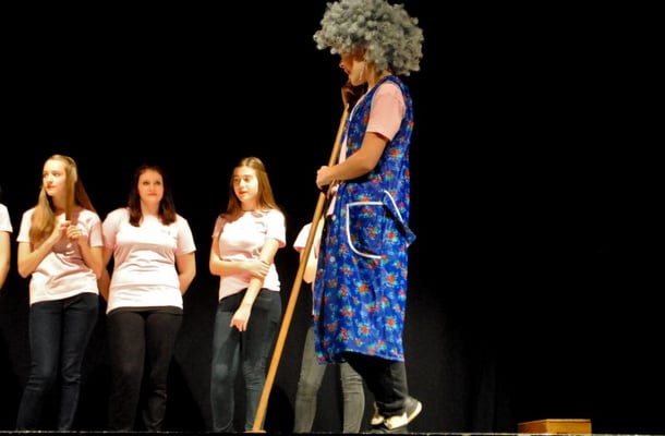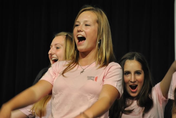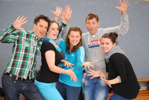 Im Rahmen einer Schulprojektwoche proben 4 Musicalprofis mit den Schülern ein Musical,